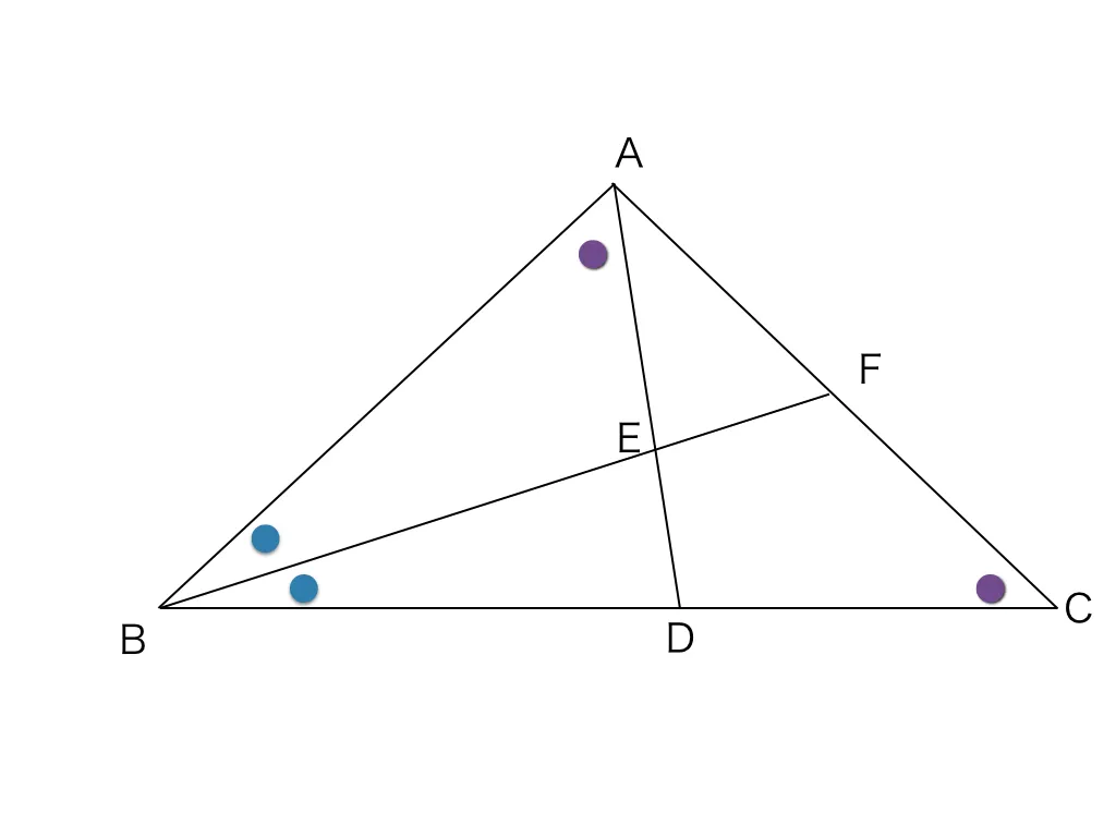 「∠AEBは、180°ー青丸ー紫丸だ!∠BFCも同じだ!」