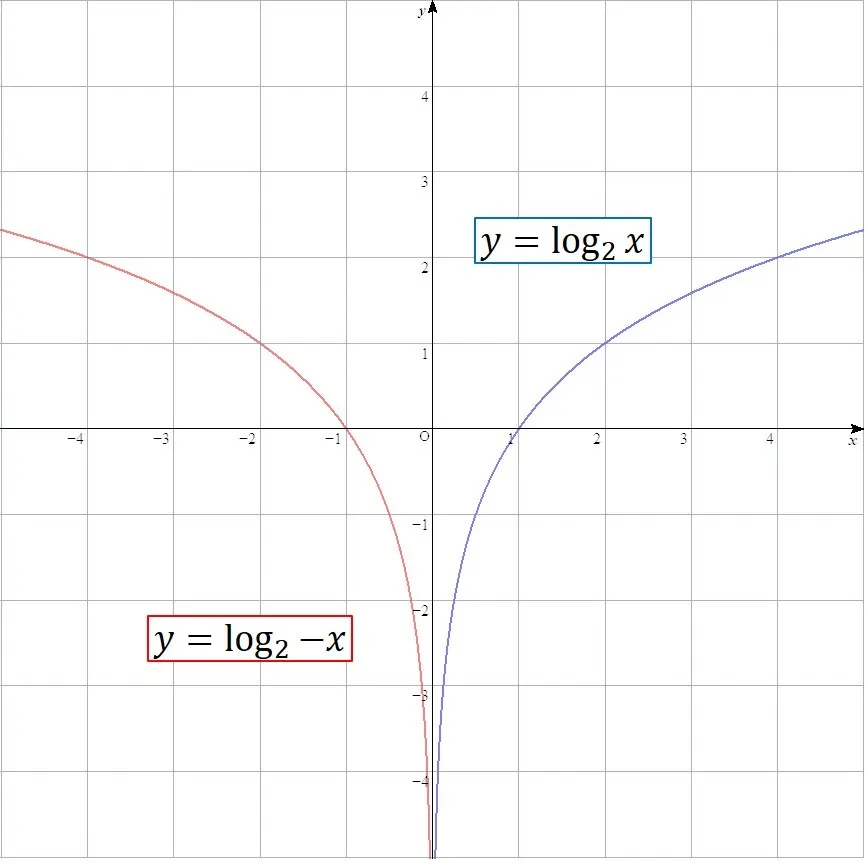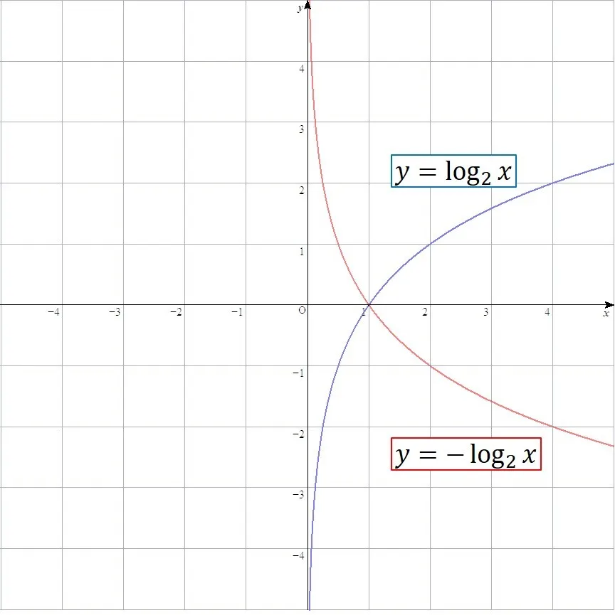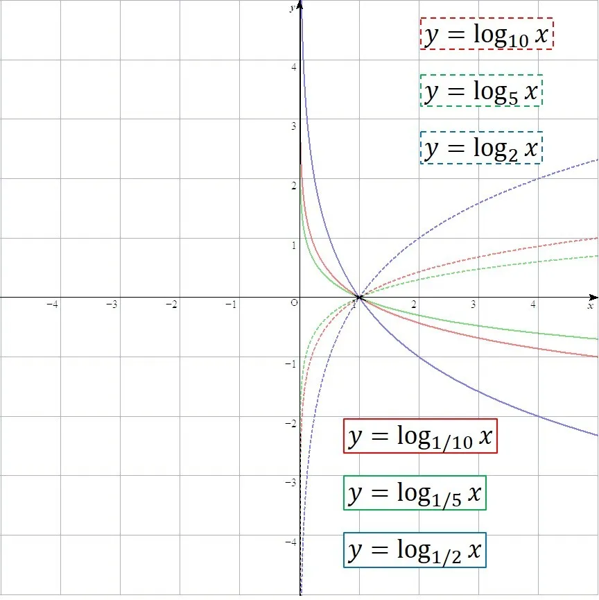 対数のグラフは底を逆数にすると,x軸対称になる.