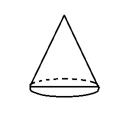 底面の半径を3, 母線の長さを5とします。中学3年生で習う三平方の定理を習えば、これだけの情報で円錐の体積を求めることができますが、ここでは中学1年生向けとして高さを4としておきます。中学3年生にはどこに三平方の定理を用いることで高さを求めることができるのか考えさせるのもいいかもしれませんね。