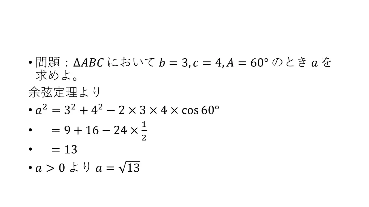そもそも余弦定理とはどんな公式だったでしょうか?一度振り返ってみます。