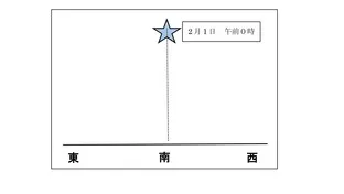 2月1日午前0時の位置と3月1日午前0時の位置を比べてみる。3月1日の位置はどっちの方に動いているのかな、東の方か西の方か?
