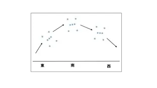 2. 年周運動の方向は日周運動の方向と同じで、東から南を通って西。