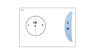 で、北極を通る線をこのように引いた。このAとB、昼はどっち?