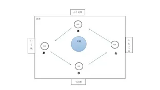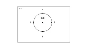 PQRSについて北の方向は上下右左のどれか、それぞれ朝・夕方・真夜中・正午のどれかを確認します。Pは下、夕方、Qは右、真夜中、Rは上、朝、Sは左、正午です。