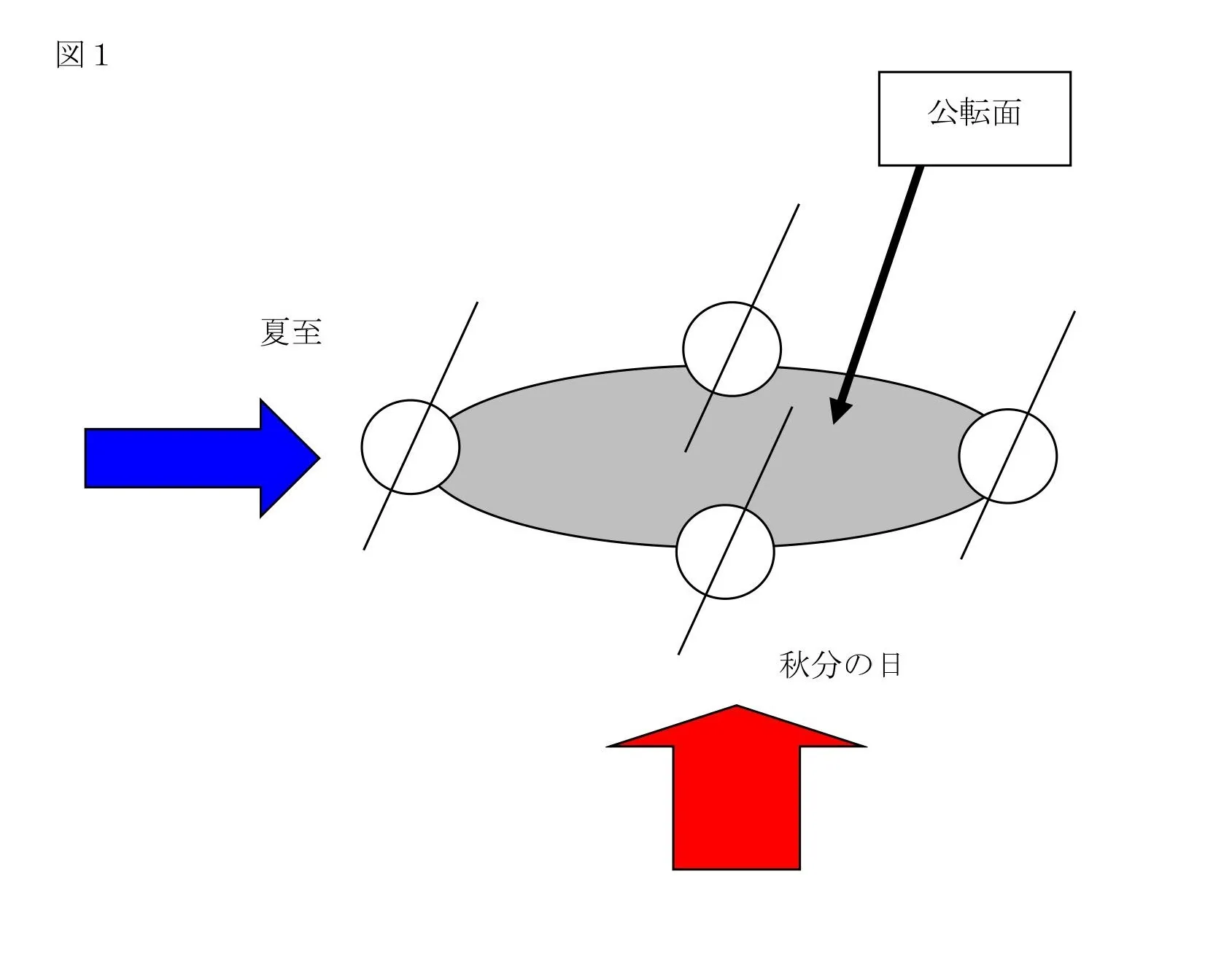 公転面のことをきちんと説明したテキストは、自分は見たことがありません。さらっとでも説明すると、生徒は納得します。要するに、図1の灰色の部分が公転面だと分かれば十分です。