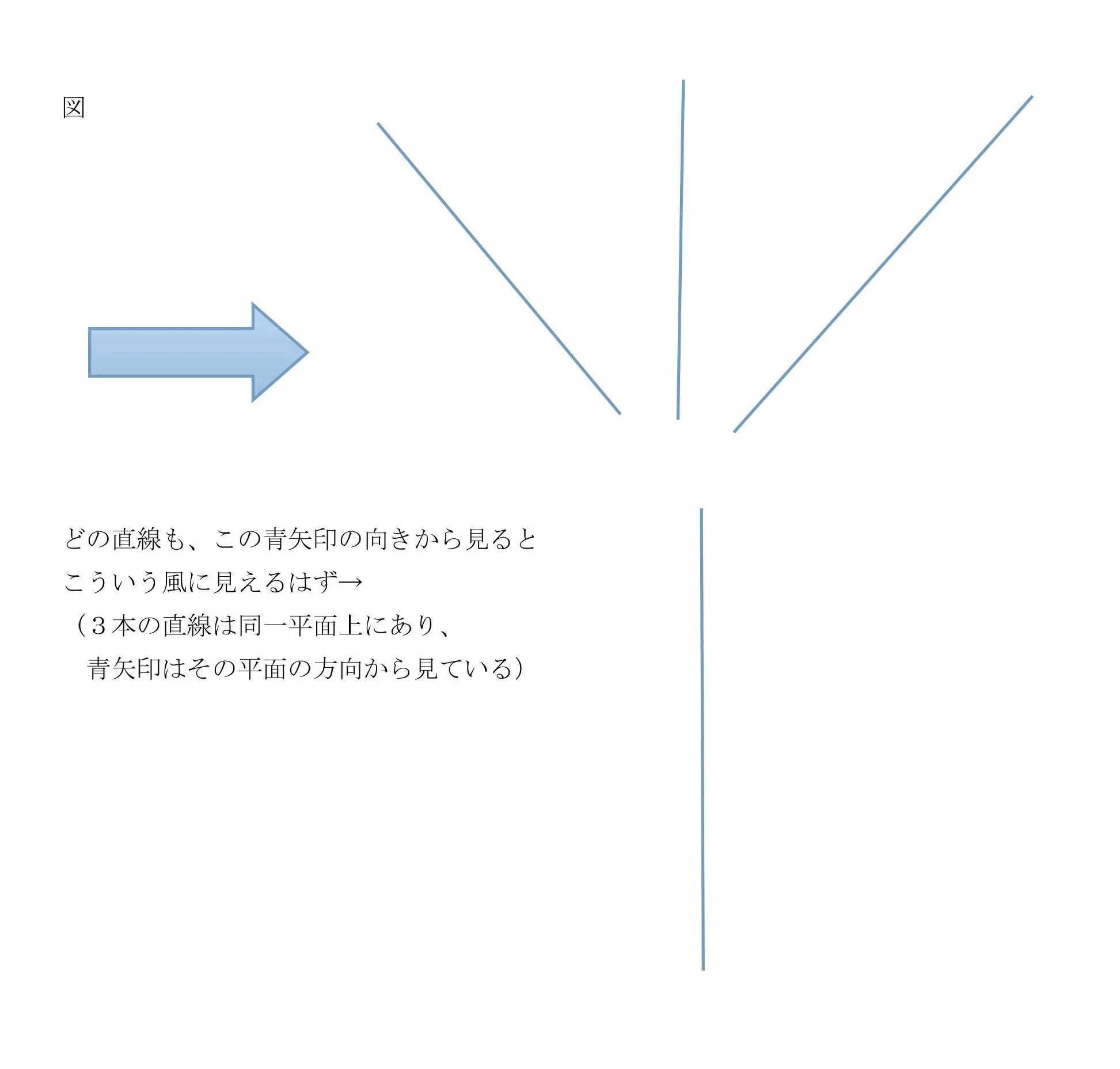 この3本の線を、矢印の方向、紙の真横から見たら、3本とも同じように見えるんだけど。
