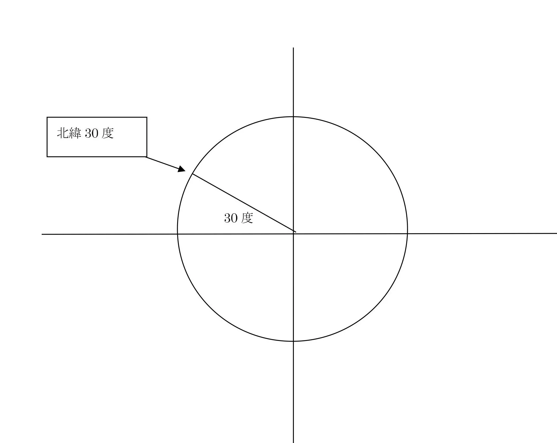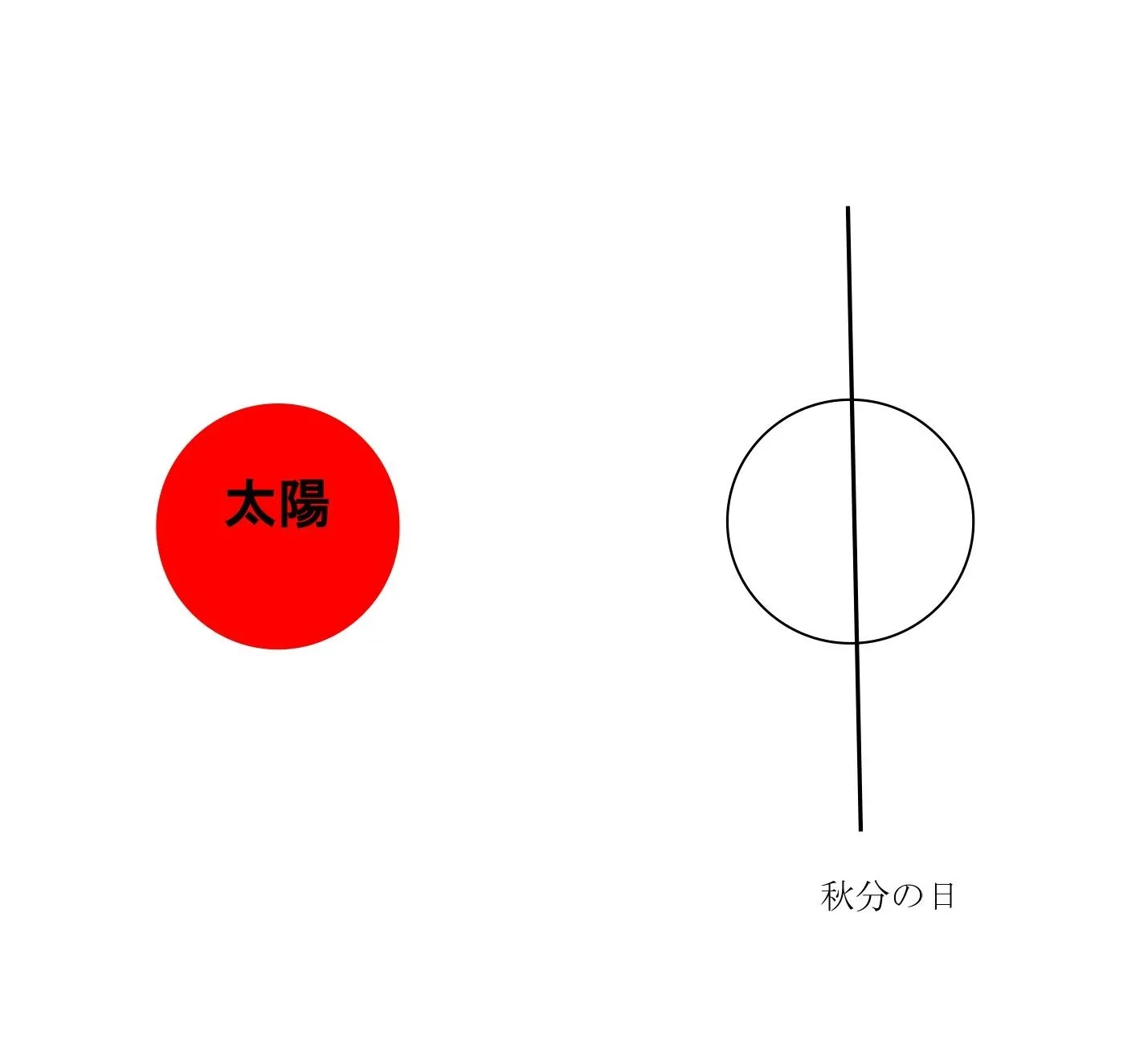 秋分の日なので、地軸はまっすぐにして考えるよ。
