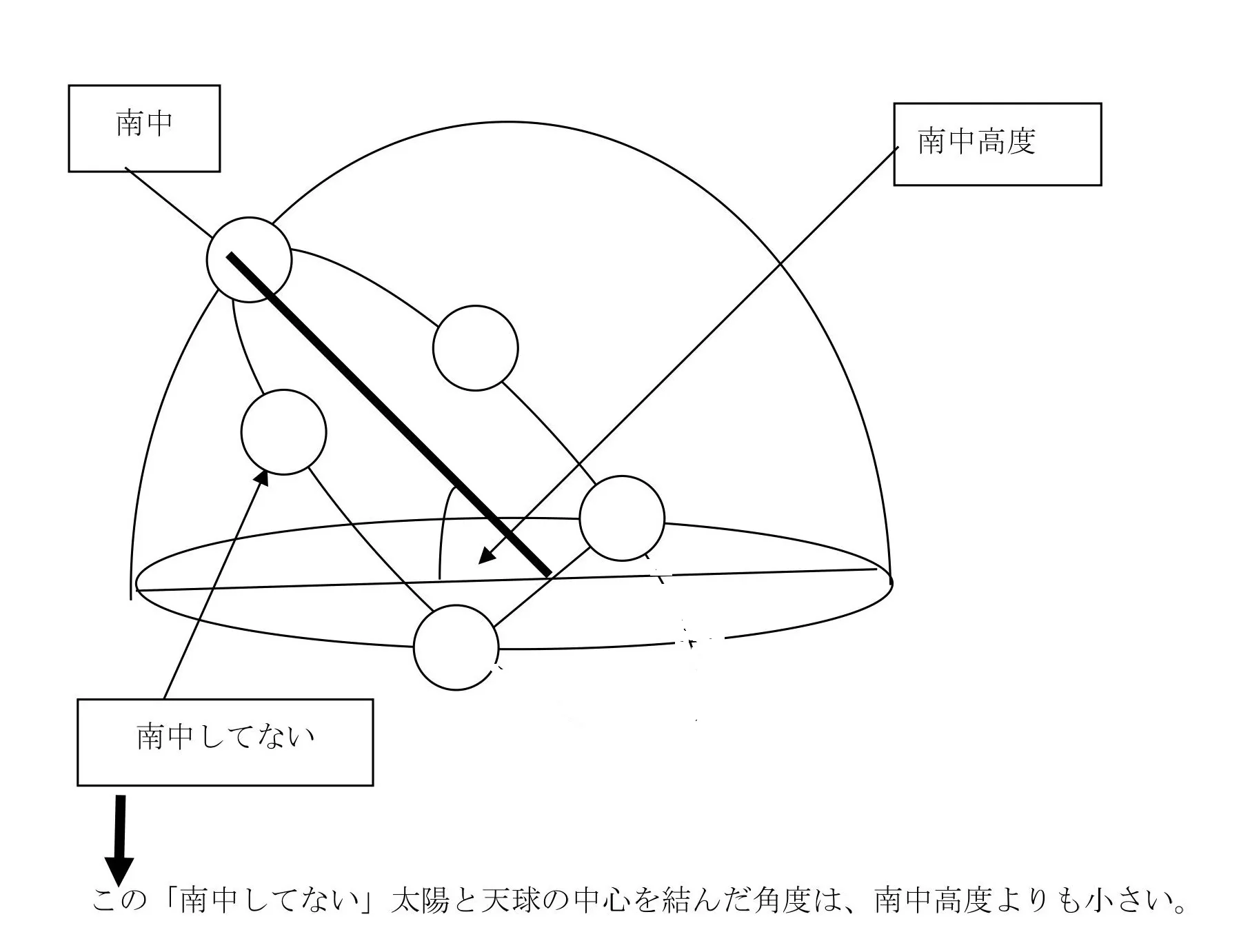 この地点を中心とする天球を考えてほしい。図13は、太陽が南中した状態だ。