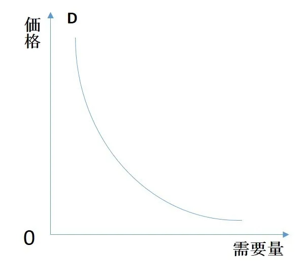 下のグラフは需要法則を図示したものである。