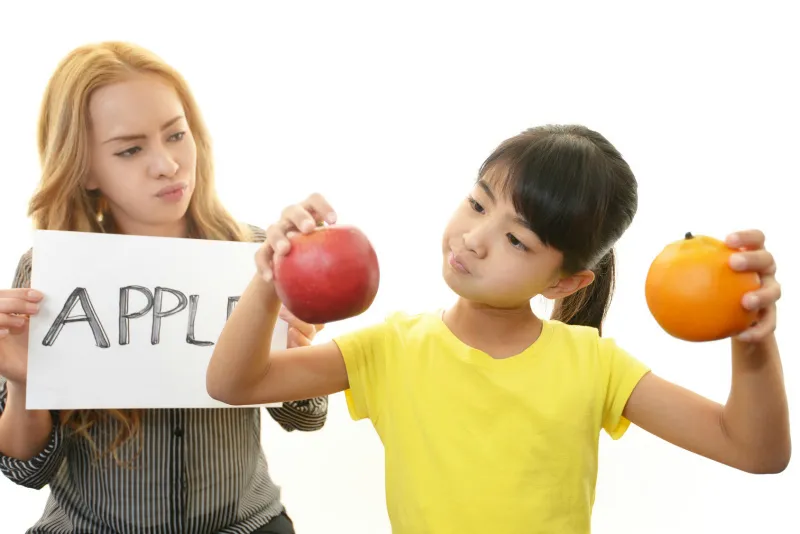 例えば日本語しか分からない生徒とリンゴの話をするとします。