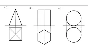 正解は(1)が四角錐 (2)が六角柱 (3)が球