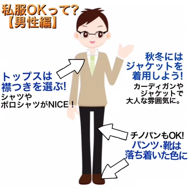 私服の許容範囲は勤務する塾や企業によって異なり、塾/企業の方針に従うのが基本中の基本です。このことはしっかりと覚えておいてください。