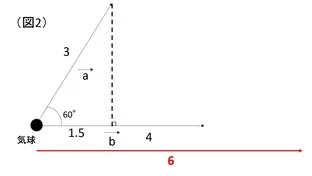 「a→方向に風速3mの風が吹いたとき、気球はb→方向に何m進むか」