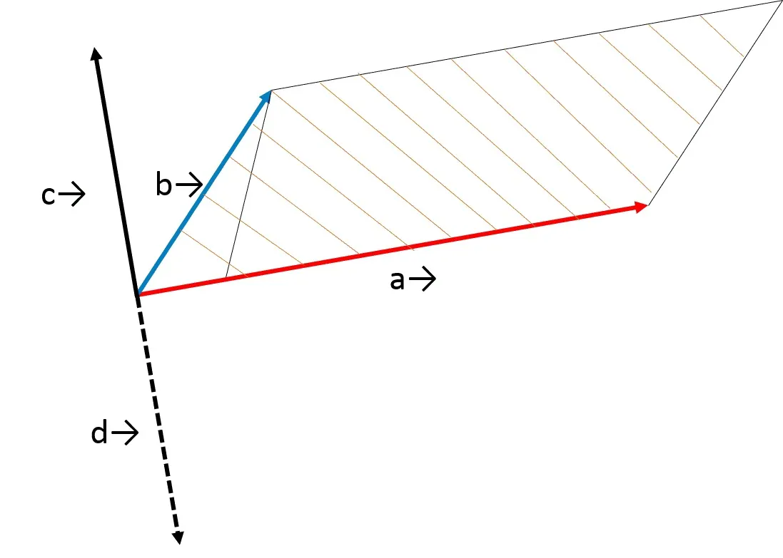 前述した通り、平面に対して垂直なベクトルは上図でいうとc→とd→の2つが考えられます。