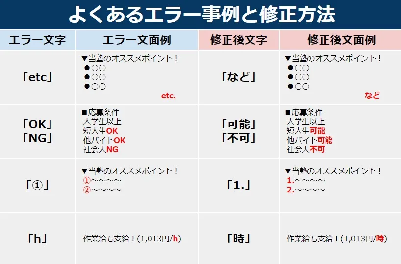 オリジナル文面に記載するとエラーになってしまう文字例とよくあるエラー例についてご紹介します。