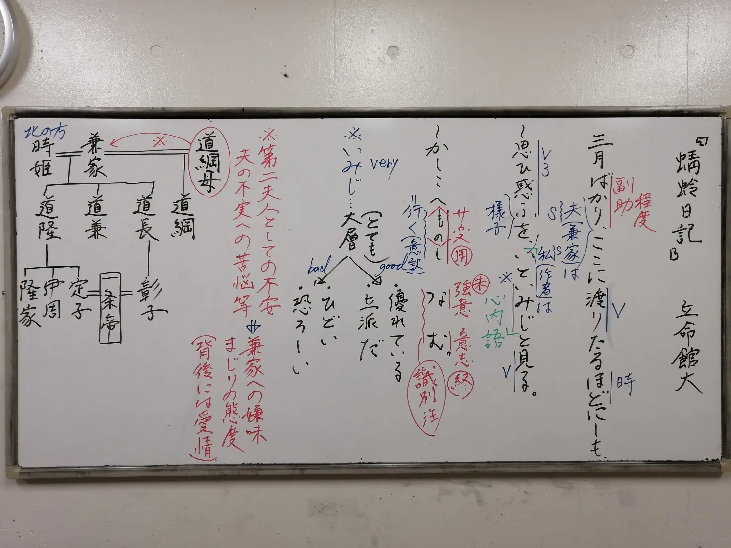 難関大受験生向けのクラスですと現代語訳や解釈も生徒が自分でできるように導かねばならないので、ただ答えを一方的に教えるのではなく、なぜその訳や解釈になるのかを論理的・多角的に説明する事も必要です。