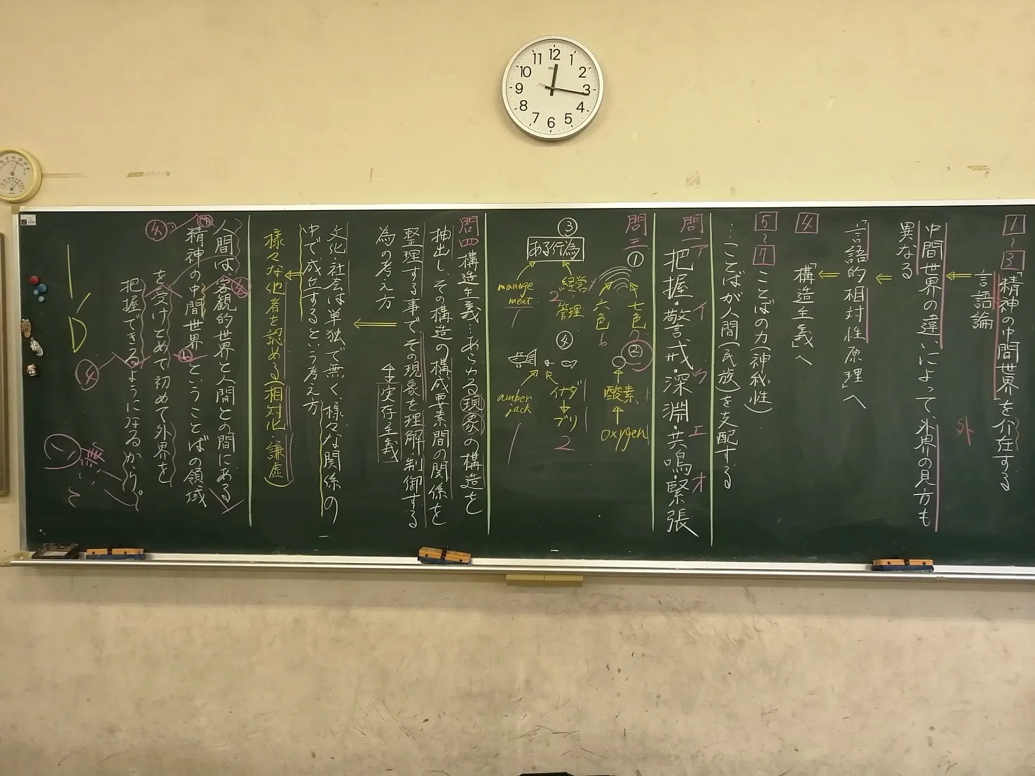 「現代文演習」でしたら、段落ごとの構成表や本文の対比構成を表にしたものを書いて、説明する時は必ず生徒の顔をこちらに向けさせて説明します。