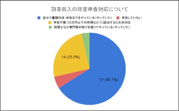 - 25%(56名中14名):申告不要(所得20万円以下のため)