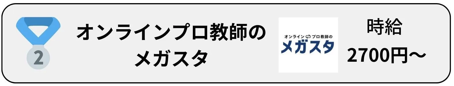 2,700〜6,420円 | 77〜184万円 | 大卒以上、指導経験必須 | オンライン専門 プロ・若手プロ・社会人教師などレベル分けあり |