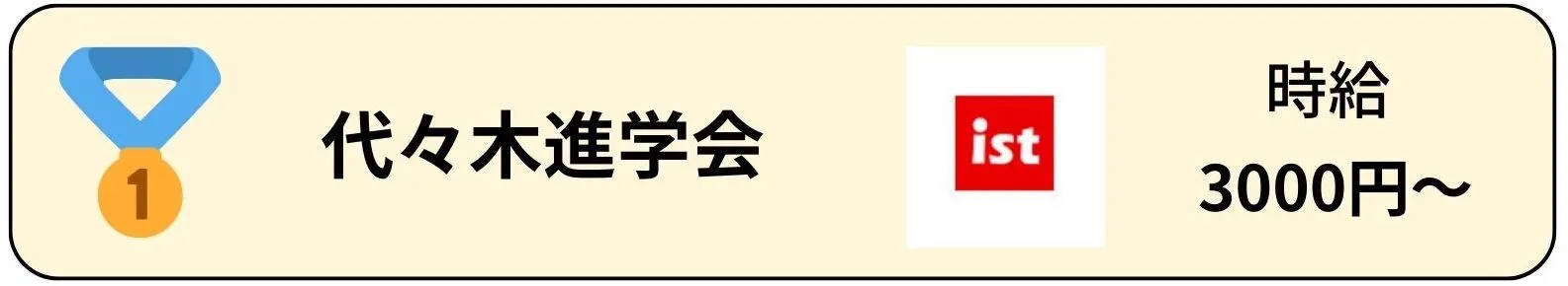 | 代々木進学会 | 3,000〜10,000円 | 86〜288万円 | 指導経験必須 | 受験校レベルに応じて 時給が変動 |