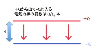 極板間の引力の公式に1/2がつくのは、自分の出した電気力線からは力を受けることができないためです。