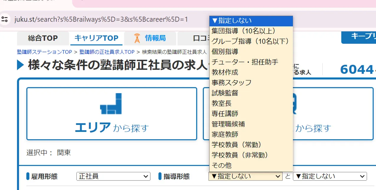 塾講師ステーションキャリアの検索結果は、教室ごとの表示となっているため、同一の塾の別教室が連続で表示されてしまうことがあります。