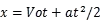 v-tグラフを考えると、図の赤い部分の面積が距離xを表します。そこで長方形部分がVot , 上の三角形部分が
