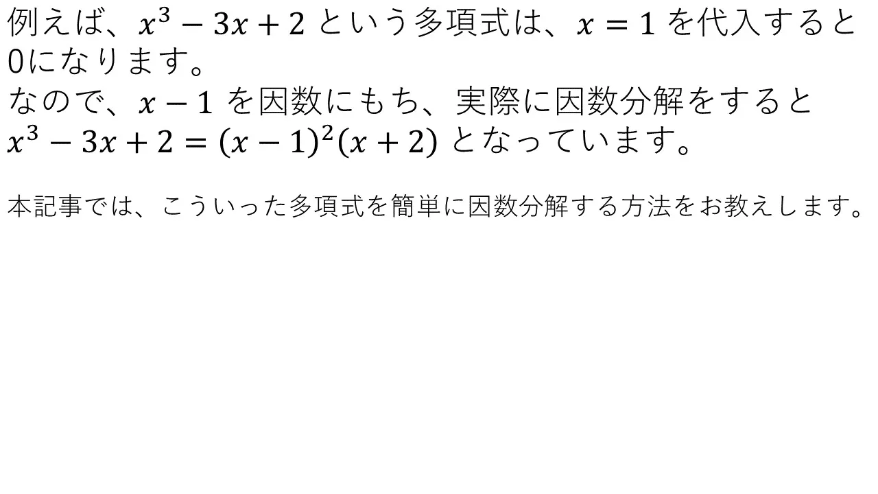 【数学講師向け】組立除法を使わずに因数分解を素早く行う方法【受験・お役立ち】